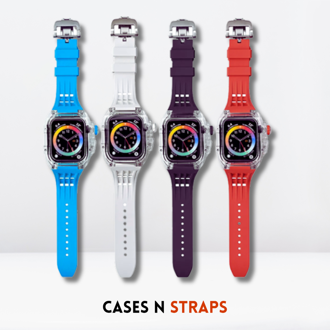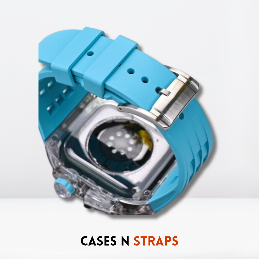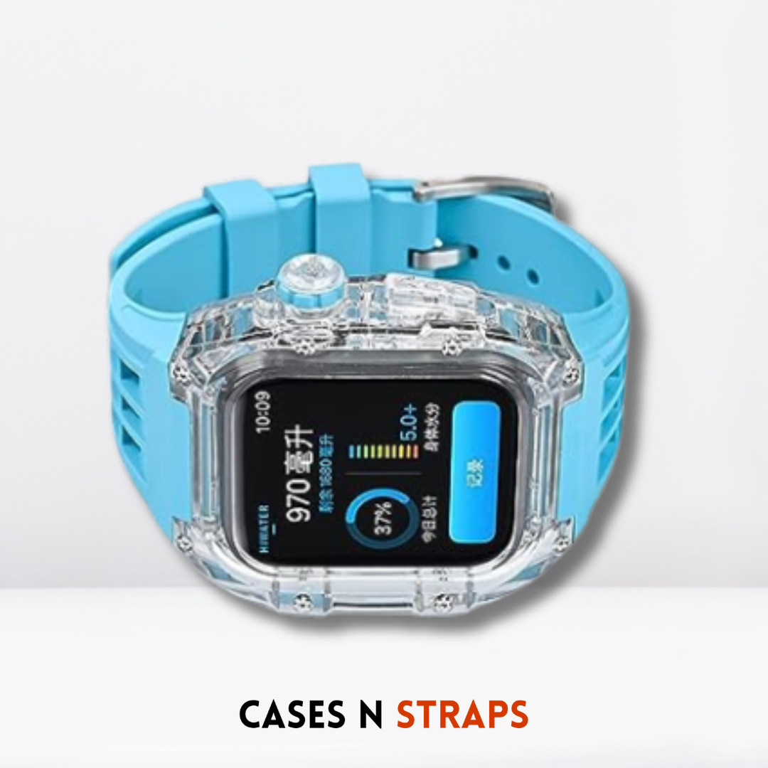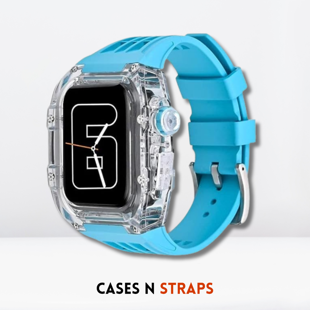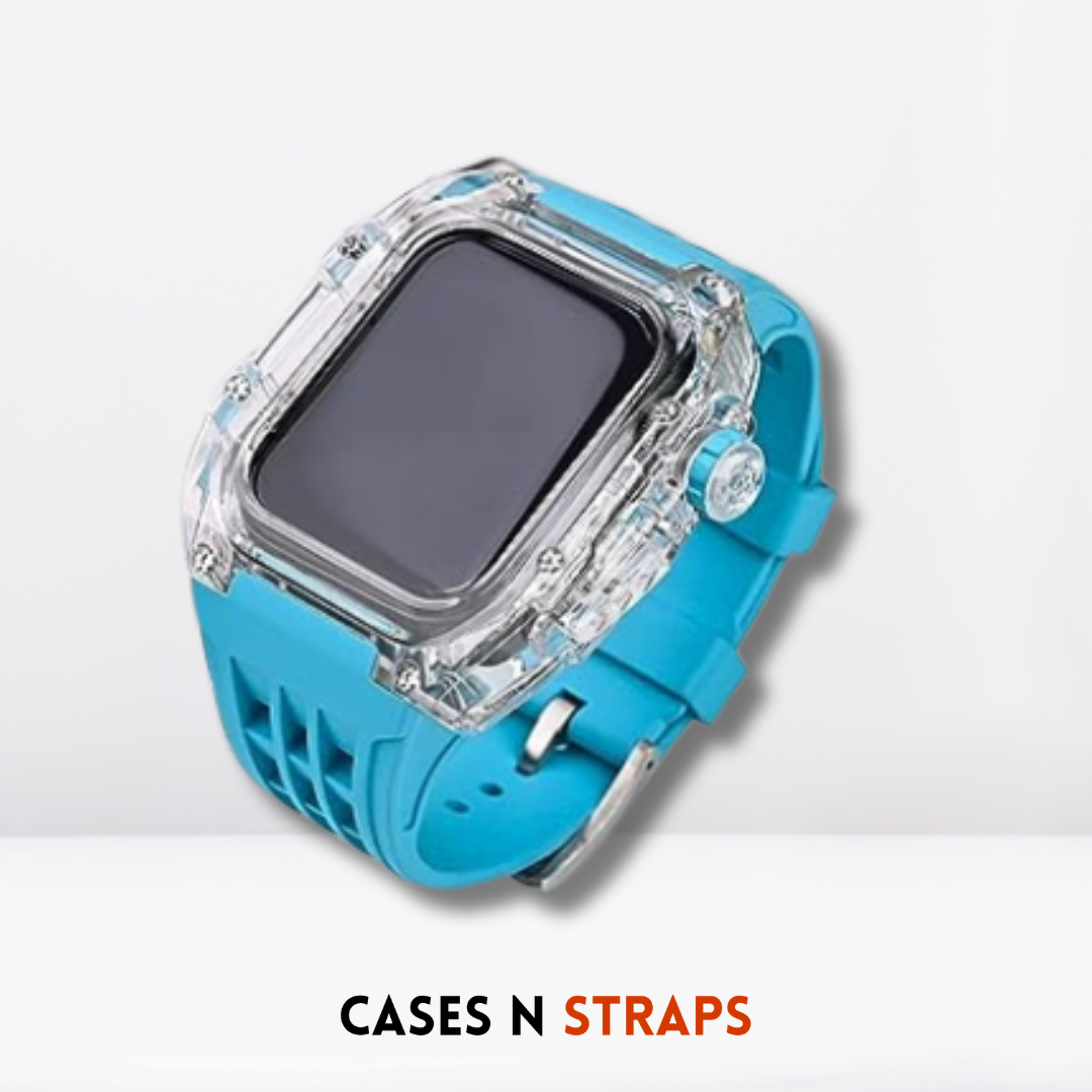 Indulge in the Luxury Transparent Case + Rubber Strap Modification Kit for iWatch – a harmonious fusion of sophistication and functionality that transforms your iWatch into a true statement of refined taste and individuality.