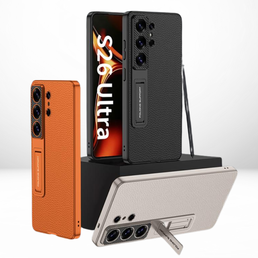 GKK Phantom Leather Stand Case with Hinge & Front Glass for Samsung Galaxy S26 Ultra
