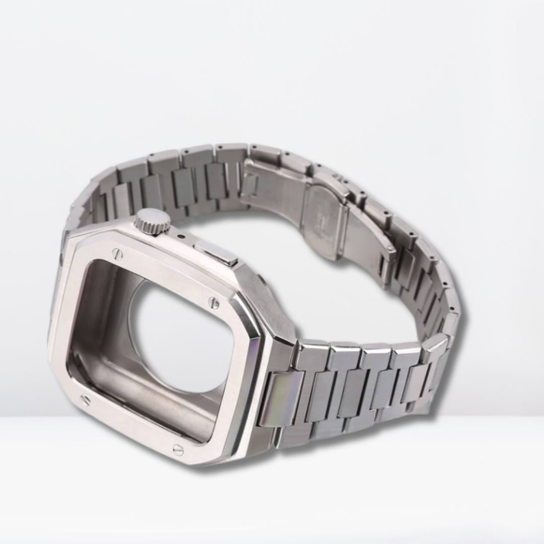 With its refined aesthetics and polished finish, this strap and case combo is perfect for both formal occasions and everyday wear. It's a statement piece that elevates your Apple Watch, making it a true reflection of your style and sophistication.