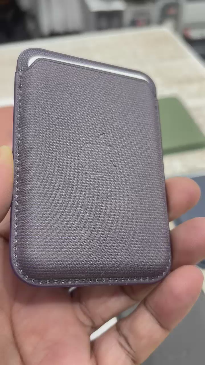 Slim and durable MagSafe wallet with a modern woven finish. Securely attaches to any MagSafe-compatible iPhone and holds essential cards safely. Made with lightweight, high-quality materials and strong built-in magnets for a stable fit. Designed for everyday use with a stylish, minimal look.